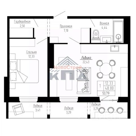 • ✅ Объект наибольшей площади: 53,8 м²