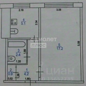 Общая площадь квартиры 29,8 м, жилая 17,1м, кухня 5,1 м.