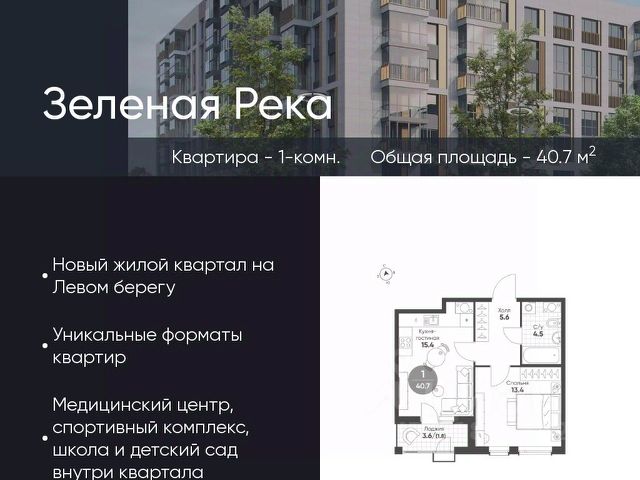 Рассмотрим обмен на 2-ком. с доплатой в этом же ЖК!!! Выгодная цена от собственника. Не упустите шанс стать обладателем современной квартиры в доме класса Бизнес-Лайт. Корпус 11, Парадная 3, Этаж 3, по самой привлекательной стоимости на рынке! Продаётся по переуступке 1-комнатная квартира в строящемся доме (Корпус 11), срок сдачи: І-кв. 2025, общей площадью 41.5 кв.м., на 3 этаже. Дом имеет собственный паркинг на -1 этаже. Современный комплекс от надёжного застройщика с развитой инфраструктурой. В первой очереди ЖК "Зеленая река" включает в себя 14 жилых домов, детский сад, коммерческие помещения, паркинги и благоустроенные дворовые зоны. Все необходимое для комфортной жизни в шаговой доступности. Высокое качество строительства. Монолитная технология, навесные вентилируемые фасады и керамогранит обеспечивают долговечность и надежность дома. Сдача дома запланирована на 3 квартал 2025 года, в течении полугода будет произведена выдача ключей. Не упускайте шанс осуществить свою мечту о комфортной жизни в новом доме уже сейчас! Преимущества проекта: - круглосуточная система видеонаблюдения, диспетчерская служба, система контроля доступа в подъезды; - концепция "двор без машин"; - променад с различным ландшафтом объединит общественные пространства квартала детские и спортивные площадки, роллердром и скейт-парк, места для спокойного отдыха и благоустроенные скверы; -будет построен детский сад в первой очереди и школа во второй; -ЖК предполагает 7 очередей, в котором будет все для жизни. Звоните прямо сейчас и узнайте подробнее об этой уникальной возможности!