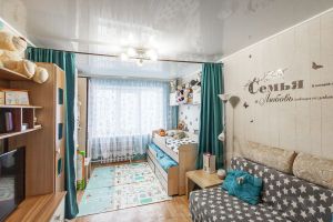 Выполнен косметический ремонт, на полу уложен линолеум, в комнате и на кухне натяжной потолок, установлены современные окна ПВХ, санузел облицован кафелем, лоджия остеклена, установлены все необходимые приборы учета. Установлен новый современный кухонный гарнитур. В комнате установлен кондиционер.