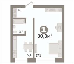 Квартира 34.3 кв.м. + лоджия 1.7.