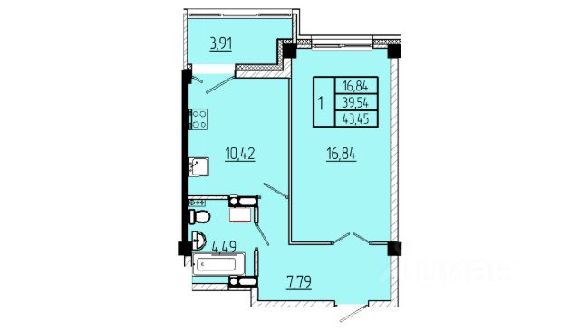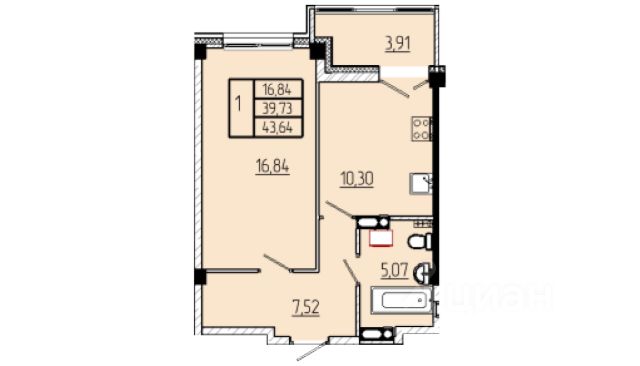 Продаётся 1-комнатная квартира в строящемся доме (Строение 3), срок сдачи: III-кв. 2026, общей площадью 43.23 кв.м., на 16 этаже.