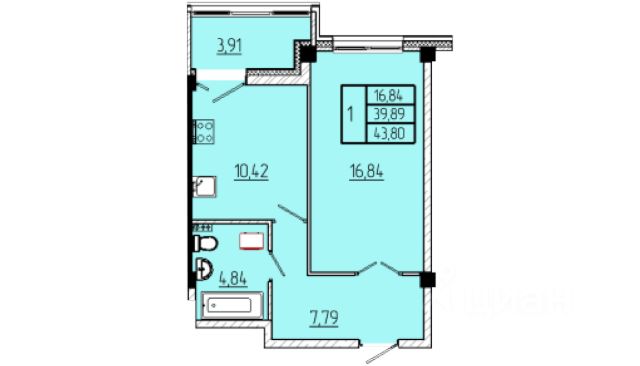 Продаётся 1-комнатная квартира в строящемся доме (Строение 3), срок сдачи: III-кв. 2026, общей площадью 43.22 кв.м., на 16 этаже.