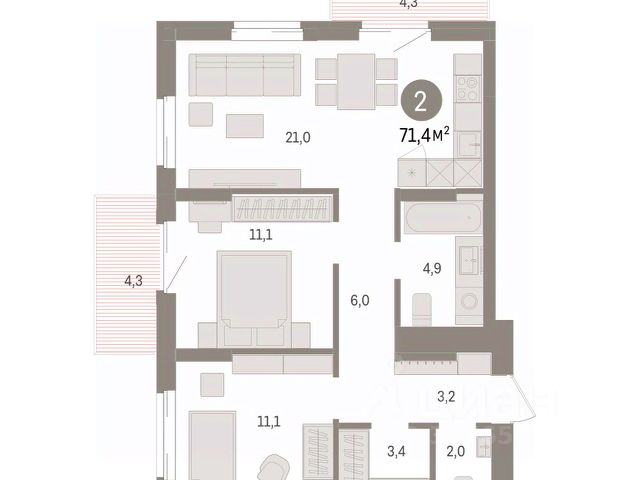 В продаже 2-комнатная квартира от застройщика DOGMA! ЖК "Снегири", г. Омск, корпус МЖД 3 Срок сдачи: (4 кв. 2027, общей площадью 74.9 кв.м., на 6 этаже.) Район для счастливой жизни "Снегири" - это семейный квартал, который дарит радость простых вещей: тепло дома, безопасность и живую природу рядом. В этом уютном уголке Омска каждый может быть собой: родители - отдыхать и заниматься спортом, дети - расти и играть в окружении друзей. Безопасность и комфорт • Закрытые дворы без машин с видеонаблюдением • Подземный и многоуровневый надземный паркинги • Собственная котельная • Дизайнерские лобби и зоны отдыха Инфраструктура для семьи • 2 детских сада, школа и современная поликлиника на территории • Игровые площадки из натуральных материалов • Воркаут-зоны, велодорожки и догхаб • Коммерческие помещения на первых этажах - от продуктовых магазинов до пунктов выдачи и салонов красоты Продуманные детали • Квартиры с готовой отделкой и панорамным остеклением • Специальные места для хранения колясок и велосипедов • Кладовые помещения • Насыщенное озеленение территории Способы покупки: • Оплата наличными • Дистанционная покупка Позвоните сейчас, чтобы забронировать квартиру вашей мечты! Ваш дом ждет вас в ЖК "Снегири" - месте, где созданы все условия для счастливой жизни. Продам 2-комнатную квартиру с кухней гостиной в Омской области.
