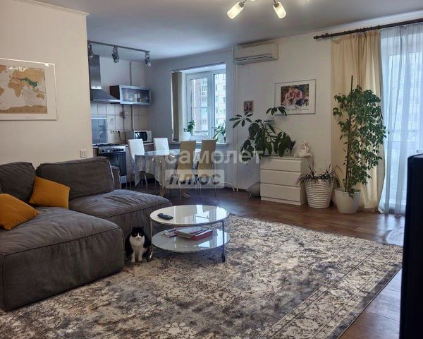 Просторная кухня, большой зал-гостиная, три изолированные комнаты, две вместительные гардеробные, два раздельных сан узла в одном из которых находится сауна, два балкона с прекрасными видовыми характеристиками.