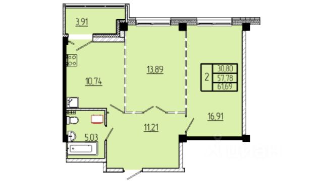 Продаётся 2-комнатная квартира в строящемся доме (Строение 3), срок сдачи: III-кв. 2026, общей площадью 61.07 кв.м., на 9 этаже.