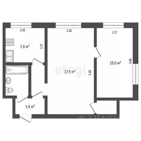 Общая площадь квартиры 41 кв. м. Балкон застеклен. Окна ПВХ.