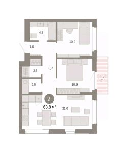 Двухкомнатная квартира в проекте "Кварталы Драверта"- это квартира с объединенной кухней-гостиной, двумя спальнями и ванной комнатой. Купить квартиру выгодно напрямую от застройщика Брусника.