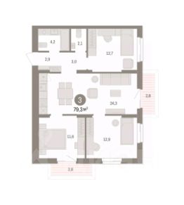 Старт продаж нового дома. По всем вопросам звоните в офис продаж, мы вам все подробно расскажем. Продается трехкомнатная квартира с предчистовой отделкой в Кварталы Драверта на 3 этаже. Общая площадь: 79.28 кв.м. Высота потолков 2.8 м. Дом монолитный, многоподъездный, переменной этажности, от 7 до 14 этажей. Квартира находится в 1-й секции высотой 14 этажей в корпусе 4. На этаже 6 квартир. В подъезде 1 пассажирский и 1 грузовой лифт. Окончание строительства - 2 квартал 2028 года. Оформление сделки по договору долевого участия. Квартира с кухней-гостиной и тремя спальнями в Кварталах Драверта. Особенности планировки: балкон, вид во двор, второй санузел, предчистовая отделка, разнесённые спальни. квартиры в нашей базе: ДВТ04-Ж1.3.1. "Кварталы Драверта" — проект преобразования левого берега Иртыша, расположенный в одном из самых быстроразвивающихся районов города в границах улиц 3-й Островской, Шаронова, Крупской и 1-й Рыбачьей. С центром его связывают два моста — имени 60-летия ВЛКСМ и 60-летия Победы. В пешей доступности находятся несколько детских садов, продуктовые магазины, кафе, аптеки и остановки общественного транспорта. Во дворе нет машин. Это приватное пространство, попасть в которое могут только жители. Здесь спроектированы: променад, лаунжи с садовой мебелью, где, развалившись на шезлонге, можно почитать или поработать, и детские площадки. Со стороны улицы Крупской мы предусмотрели сквер, со стороны улицы Шаронова — пешеходный бульвар. Эти общественные пространства отделены от двора двухметровыми зелёными изгородями. Они станут локальными точками притяжения и будут способствовать развитию добрососедства. Также за пределами двора мы создали спортивный хаб с баскетбольной площадкой в центре. Напротив мы разместили деревянную зрительскую трибуну, слева — теннисные столы, справа — площадку для паркура. #zMEBCB 3-комнатная квартира, примерная площадь 80 м2 в Омской области.
