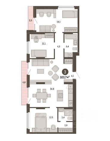 О КВАРТИРЕ : Квартира с просторной кухней-гостиной и тремя спальнями, одна из них мастер спальня . Два выхода на балкон из кухни и спальни.