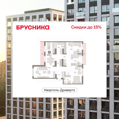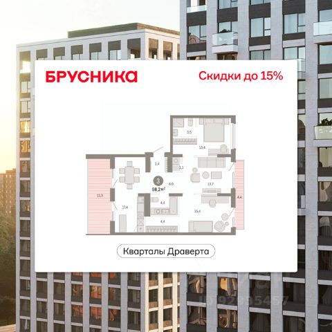 Старт продаж нового дома. По всем вопросам звоните в офис продаж, наши менеджеры вам все расскажут. 3-комн. квартира с предчистовой отделкой в Кварталы Драверта на 9 этаже. Общая площадь: 126.62 кв.м. Высота потолков 2.7 м. Дом монолитный, многоподъездный, переменной этажности, от 7 до 9 этажей. Квартира находится в 4-й секции высотой 9 этажей в корпусе 2. На этаже 6 квартир. В подъезде 1 грузовой лифт. Окончание строительства - 2 квартал 2026 года. Оформление сделки по договору долевого участия. Квартира с кухней-гостиной и тремя спальнями в Кварталах Драверта. Особенности планировки: балкон, мастер-спальня, окна в пол, постирочная, свободная планировка, терраса на крыше. Объявление от застройщика. Покупка квартиры защищена банком. Трехкомнатная квартира в проекте "Кварталы Драверта" - это квартира с объединенной кухней-гостиной, тремя спальнями и ванной комнатой. Купить квартиру выгодно напрямую от застройщика Брусника. Отделка квартиры в проекте "Кварталы Драверта" На сдаче в квартире-студии выполнена отделка под чистовую: - Стены выровнены и оштукатурены, на полу - цементно-песчаная стяжка с минеральным утеплителем. - Проведена разводка электрики, розетки, выключатели, радиаторы отопления с терморегуляторами и приборы учета, показания которых благодаря системе телеметрии автоматически передаются в управляющую компанию. - В этом проекте мы отказались от квартирных стояков и сделали разводку труб водоснабжения по полу. - Окна пластиковые с пятикамерным профилем, который блокирует уличный шум и защищает помещения от промерзания. Расположение проекта "Кварталы Драверта" — проект преобразования левого берега Иртыша, расположенный в одном из самых быстроразвивающихся районов города в границах улиц 3-й Островской, Шаронова, Крупской и 1-й Рыбачьей. С центром его связывают два моста — имени 60-летия ВЛКСМ и 60-летия Победы. В пешей доступности находятся несколько детских садов, продуктовые магазины, кафе, аптеки и остановки общественного транспорта. Купить квартиру в Бруснике Купить трехкомнатную квартиру можно с помощью программ покупки от застройщика Брусника: - ипотека по эксклюзивной ставке с помощью в получении положительного кредитного решения через сервис ипотечный брокер; - квартиры в рассрочку без процентов от застройщика Брусника; - обмен квартиры на новую. Получить одобрение ипотеки или рассрочку, а также осуществить обмен квартир можно онлайн. Запишитесь на онлайн презентацию по телефону или на сайте. квартиры в нашей базе: ДВТ-ГП02-4-4.9.4. "Кварталы Драверта" — проект преобразования левого берега Иртыша, расположенный в одном из самых быстроразвивающихся районов города в границах улиц 3-й Островской, Шаронова, Крупской и 1-й Рыбачьей. С центром его связывают два моста — имени 60-летия ВЛКСМ и 60-летия Победы. В пешей доступности находятся несколько детских садов, продуктовые магазины, кафе, аптеки и остановки общественного транспорта. Во дворе нет машин. Это приватное пространство, попасть в которое могут толь