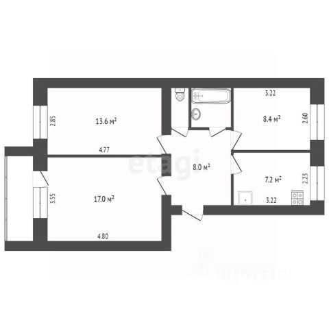 • ✅ Объект наибольшей площади: 74,6 м²