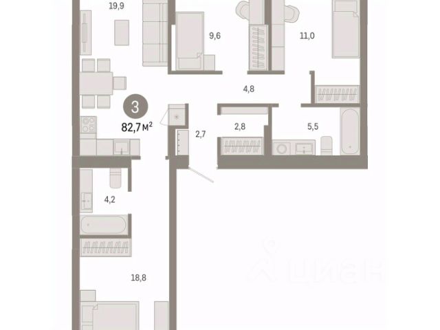 Все комнаты светлые, правильной формы, удобно зонированы для комфортной жизни семьи.