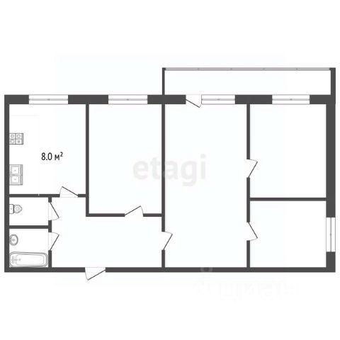 Продаётся отличная просторная, светлая 4-комнатная квартира площадью 80,6 м².