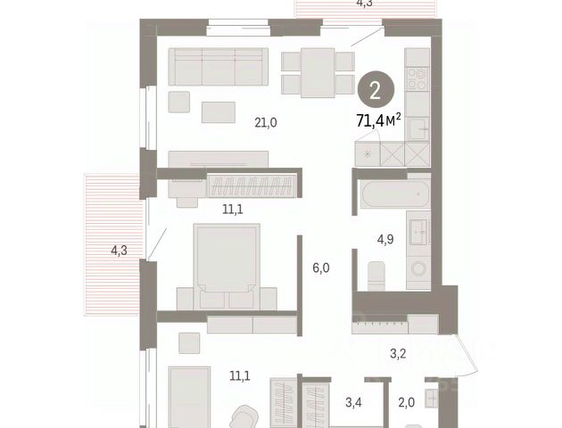 | 🔷 Средняя цена за м2: | 90 тыс. ₽/м² |