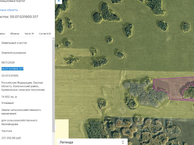 Земельный участок 7,5 га, земли сельхозназначения, Калачинский район, Омская область Цена: 220 000 ₽, торг уместен, продажа от собственника Продаётся земельный участок общей площадью 74 852 кв. м (около 7,5 га). Категория земель: земли сельскохозяйственного назначения. Разрешённое использование: для сельскохозяйственного производства. Кадастровый номер: 55:07:031905:317. Адрес: Российская Федерация, Омская область, Калачинский район, Куликовское сельское поселение. Участок подходит для: размещения пашни, сенокосных угодий, сельхозкультур; организации КФХ или фермерского хозяйства; долгосрочного инвестиционного хранения земли в аграрном районе. Калачинский район Омской области традиционно аграрный, с развитой инфраструктурой и устойчивым спросом на сельхозземлю. Цена: 220 000 ₽, торг уместен. Продажа от собственника, без посредников. По всем вопросам — пишите в сообщения или звоните, организуем просмотр и покажем документы.