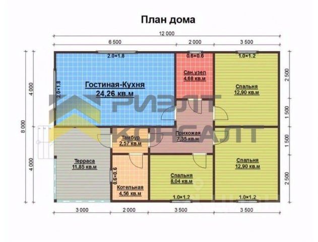 Дом обладает удобной и современной планировкой. Вас ждёт просторная кухня-гостиная, площадью 38,4 кв.м. (есть возможность сделать 3 комнату), прихожая, две вместительные спальни, котельная и сан.узел., комнаты изолированы. Окна выходят на две стороны, можно любоваться и шикарными закатами и рассветами. Удобное расположение и комфортная площадь комнат.