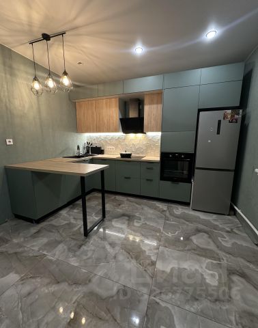 Затем вы попадаете в просторную и очень теплую кухню. Ремонт 2025 года в ней выполнен с использованием очень качественных материалов, подсветка - с использованием парящего потолка , а также атмосферных боковых светильников помимо дизайнерского верхнего света.