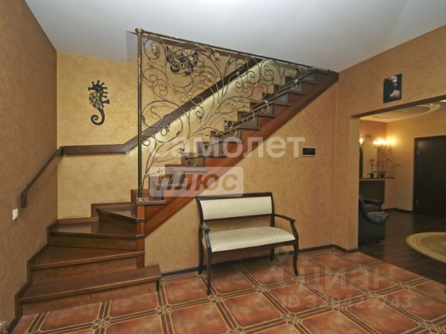 Лестница, ведущая с первого на второй этаж дома, как отдельный вид искусства, выполнена из гранита, привезённого из-за рубежа, где автоматическая подсветка последовательно освещает каждую ступень при передвижении.