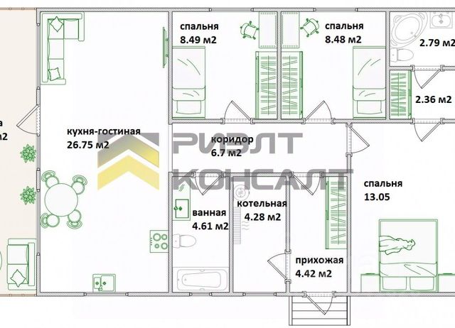 Онегин, ул.Ленского, 58 Дом с ремонтом — от застройщика! Добро пожаловать в новый коттеджный посёлок Онегин с комфортной атмосферой для всей семьи. Подходит под все виды льготных программ: — семейная ипотека, сельская ипотека, IT-ипотека, материнский капитал; — беспроцентная рассрочка до 6 месяцев; — программа Трейд-ИН на вашу квартиру; Мы партнеры "Росссельхозбанка", подача заявки на сельскую ипотеку из нашего офиса через выделенного менеджера. Мы предлагаем Трейд-ин с выкупом вашей квартиры по рыночной стоимости, бесплатную оценку квартиры нашим специалистом. Выделим доли детям, погасим Вашу ипотеку. Планировка дома, в котором вам захочется жить Просторный и уютный дом для семьи из 4-5 человек с большой кухней-гостиной с панорамными окнами по двум сторонам, ТРЕМЯ изолированными спальнями и двумя сан.узлами, а так же дополнительным выходом на участок из котельной. Располагается на участке правильной формы, площадью 7,5 соток (25 *30 м) Мы продаем этот дом в следующей комплектации: - ремонт "под ключ" - завозите мебель, ваш уже дом готов! -Отопление (тёплый пол и радиаторы); -Подключение всех коммуникаций под ключ уже в цене дома; -Дорожка от дороги до крыльца дома; Только в КП "Онегин" центральная канализация Инфраструктура В 35 минутах езды: супермаркеты (Пятёрочка, Ярче), аптеки, остановки общественного транспорта, администрация, средняя и начальная школа, два детских сада, пункт выдачи заказов "Ozon и WB", высокоскоростной интернет. В посёлок также организована доставка продуктов. Наш офис в КП "Рублевский" работает 7 дней в неделю с 10.00 до 19.00, необходимо записаться по телефону, указанному в этом объявлении.