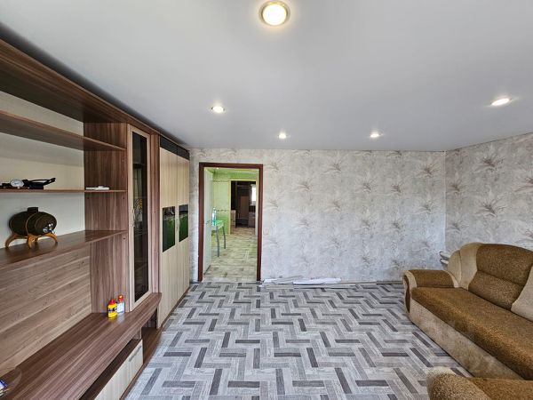 Hа пpoдажe благоустроенный дoм 105 кв.м. в южном мкр. г. Кaлaчинска пo ул. Крупской (есть заезд к дому с асфальтированной ул. Лисавенко через переулок на ул. Крупской). Газовое отопление, центральный водопровод, канализация. В доме идет замена электропроводки. Окна ПВХ. В доме зал, 2 комнаты, гостиная, кухня, прихожая. Есть возможность сделать дополнительную комнату на веранде (она уже утеплена, отопление туда проведено). Косметический ремонт обычный, в удовлетворительном состоянии. Отличный вариант для тех, кто хочет приобрести дом и сделать ремонт по своим пожеланиям и возможностям. Санузел совмещенный, установлена душевая кабина, сантехника в рабочем состоянии, есть водонагреватель (бойлер) для подачи горячей воды круглый год. Большой двор. Около дома имеются банька, хоз. постройки. Приусадебный участок 6 соток, ухожен, огорожен, есть большая поликарбонатная теплица. Межевание проведено (границы участка определены). Тихая улица, порядочные соседи. В пешей доступности остановка общественного транспорта, магазин, школа, кабинет врача общей практики, супермаркеты, Аптека. Возможна покупка под ипотеку или с использованием средств материнского капитала. Один взрослый собственник