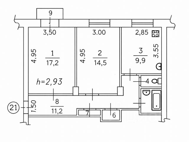 * Простор и величие: Ощутите свободу с высокими трехметровыми потолками, создающими невероятное ощущение простора и света.