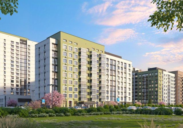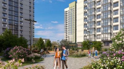 Закрытый двор без машин с интенсивным озеленением, современными детскими площадками, зоной уличных тренажёров и уютными зонами для отдыха.