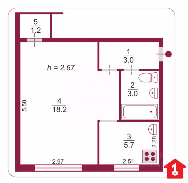 • ✅ Объект наибольшей площади: 58,5 м²