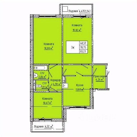 Проводка поменяна, батареи, пол выровненный, залитый бетоном, сверху линолеум. В ванне кафель.есть счётчики на холодную, горячую воду и газ.