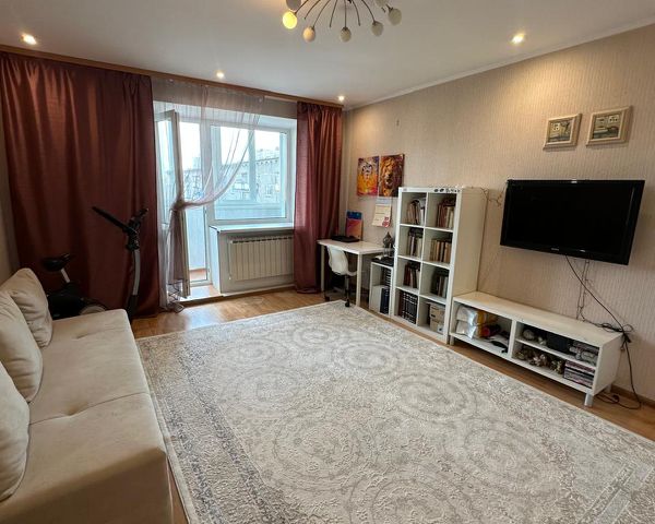 Квартира не угловая, две комнаты изолированные, вид из окна на обе стороны дома. Выход на балкон из зала, на лоджию из спальни. Санузел раздельный, облицован плиткой. Площадь квартиры составляет 59,8 кв.м