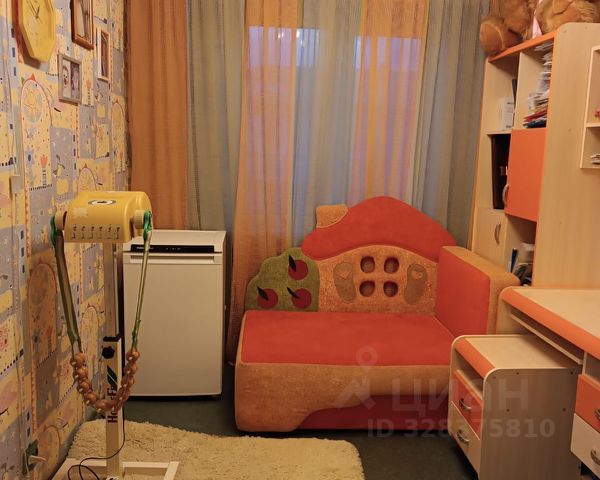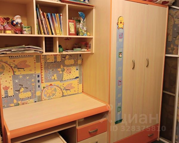 Натяжные потолки, стены выровнены, на полу в комнатах линолеум, на кухне ламинат, везде алюминиевые радиаторы. В одной комнате встроенный угловой шкаф в комплекте с полками на противоположной стене, в другой - большой корпусный шкаф из ИКЕА.