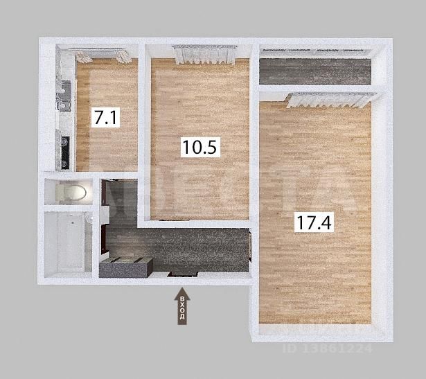• Планировка включает в себя кухню с обеденной зоной, две изолированные комнаты, гостиную, совмещенный санузел, а также балкон и лоджию;