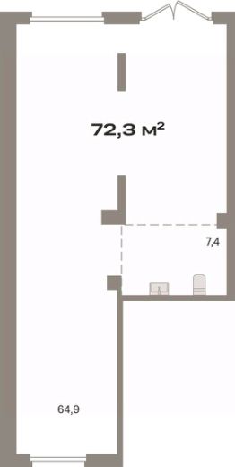 Помещение свободного назначения на 1 этаже, общая площадь 72.3 кв.м., без отделки. Стоимость помещения 19,300,000 руб., цена за кв.м 266,943 руб.