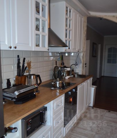 Кухонный гарнитур из массива со встроенной техникой Electrolux эл. варочная панель, духовой шкаф, 2 встроенных холодильника, посудомоечная машина.