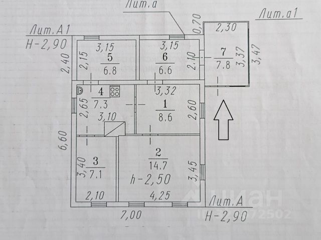 Каркасно-насыпной дом 58.9 кв.м., 1964 год постройки. Дом состоит из 1 комнаты, кухня, совмещенный санузел, коридор, котельная. В доме газовое отопление, центральный водопровод, установлен счетчик учета воды, выгребная яма на 3 кольца. Дом состоит из гостиной, кухни, совмещенный санузел(душевая кабина, унитаз), котельная, коридор, прихожая. Состояние хорошее. Земельный участок в собственности, межевание есть. Чистая продажа. Документы готовы.