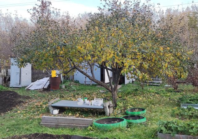 Кирпичный дом 6 на 4 м, проведен свет в дом, пол деревянный новый, утеплённый, окна пластиковые. На территории участка: туалет, новый сарай, железный бак под воду 3 куба, колодец. Посадки: пять яблонь, жимолость, клубника, вишня, слива, крыжовник, смородина, малина, кедр, черноплодная рябина, две груши трехлетки, облепиха, ирга, липа, боярышник и цветы.