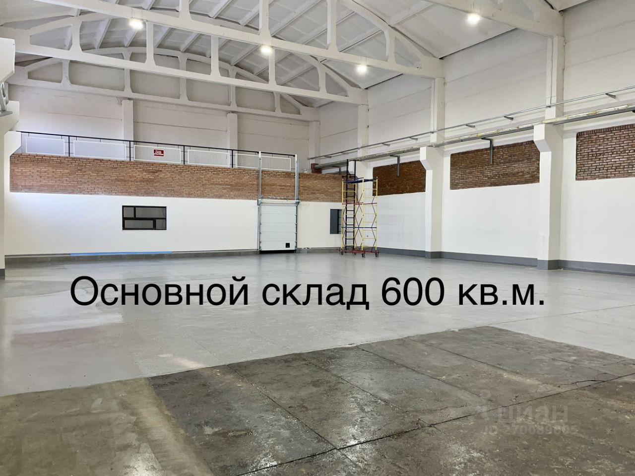 1. Основной склад холодный с возможностью подачи отопления 600 кв.м. Высота потолков 15 м.
