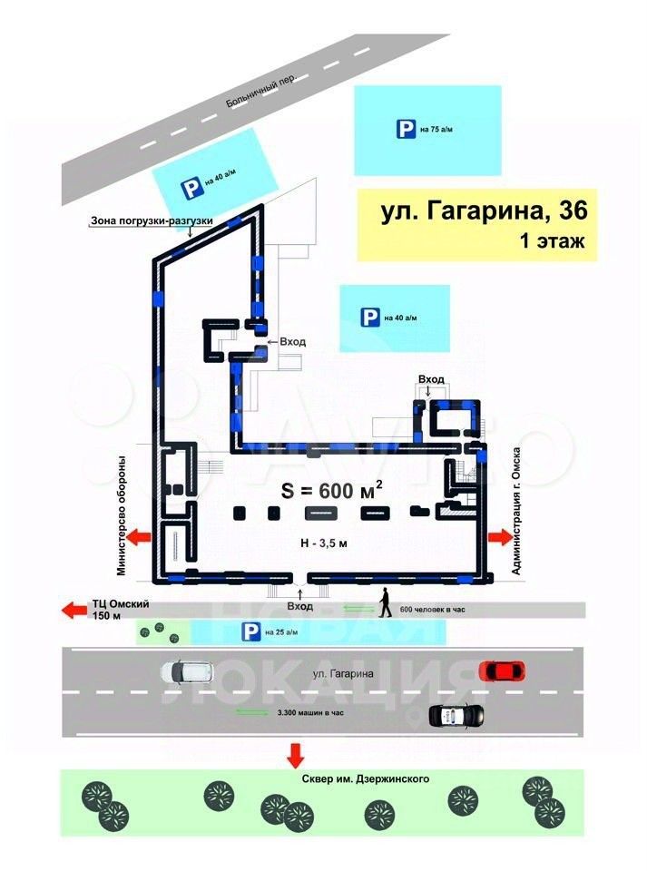 Здание на первой линии (вдоль дорожной магистрали). Автомобильный трафик 3.300 машин / час., пешеходный 340 чел. / час. Кроме этого 2500 + постоянных офисных сотрудников в близлежащих зданиях - в шаговой доступности!