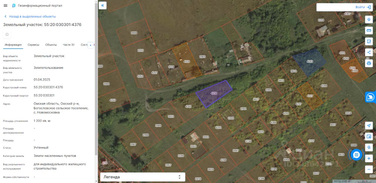 земельный участок, государственная собственность на который не разграничена, с кадастровым номером 55:20:030301:4376, площадью 1200 кв. м., из категории земель населенных пунктов, с видом разрешенного использования — для индивидуального жилищного строительства, расположенного в границах Богословского сельского поселения Омского муниципального района Омской области, местоположение которого: Омская область, Омский район, с. Новомосковка