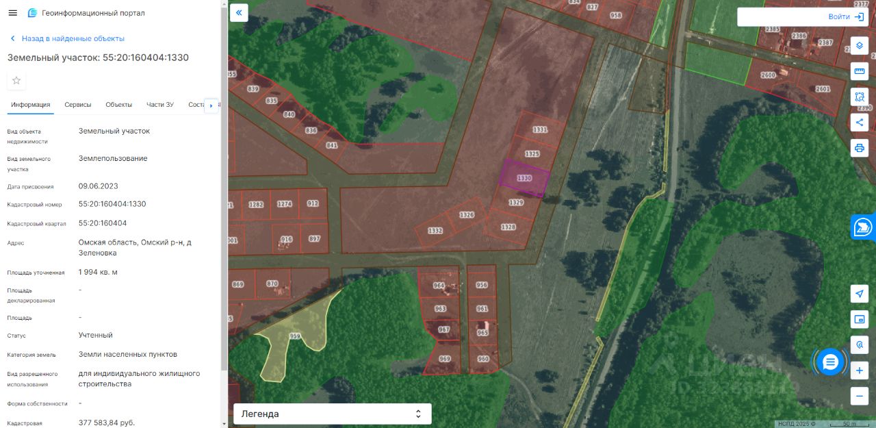 земельный участок, государственная собственность на который не разграничена, с кадастровым номером 55:20:160404:1330, площадью 1994 кв. м., из категории земель населенных пунктов, с видом разрешенного использования — для индивидуального жилищного строительства, расположенного в границах Омского сельского поселения Омского муниципального района Омской области, местоположение которого: Омская область, Омский район, д. Зеленовка