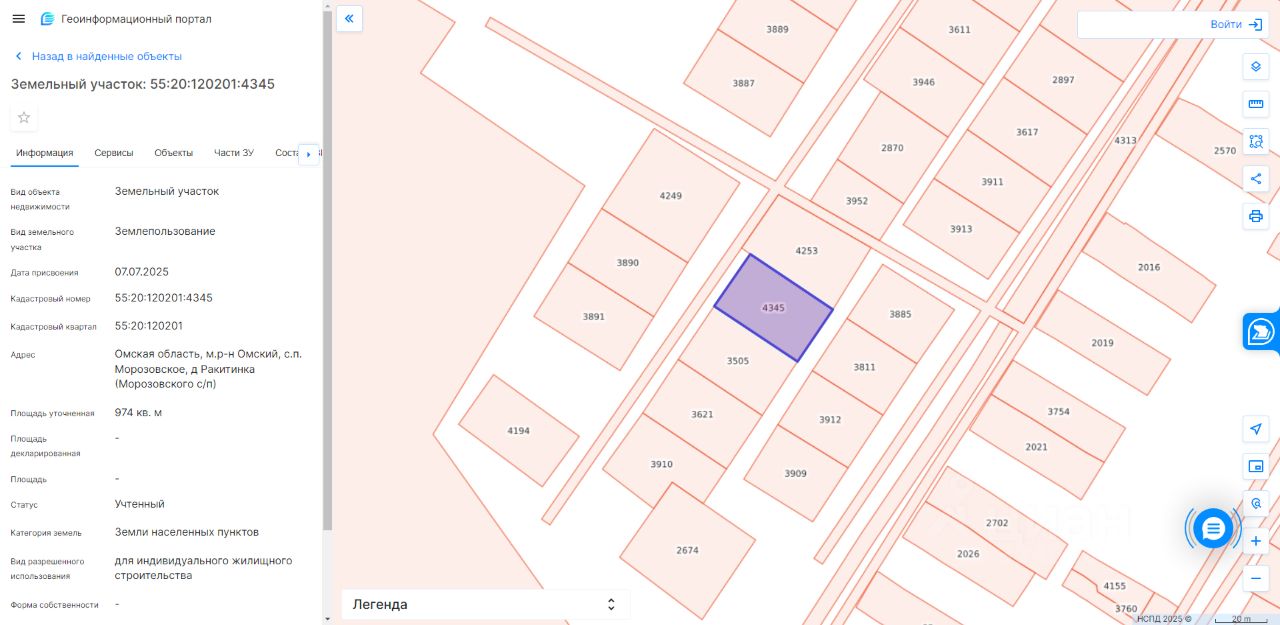земельный участок, государственная собственность на который не разграничена, с кадастровым номером 55:20:120201:4345, площадью 974 кв. м., из категории земель населенных пунктов, с видом разрешенного использования — для индивидуального жилищного строительства, расположенного в границах Морозовского сельского поселения Омского муниципального района Омской области, местоположение которого: Омская область, Омский район, Морозовское сельское поселение, д. Ракитинка