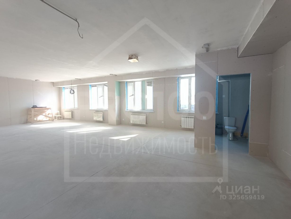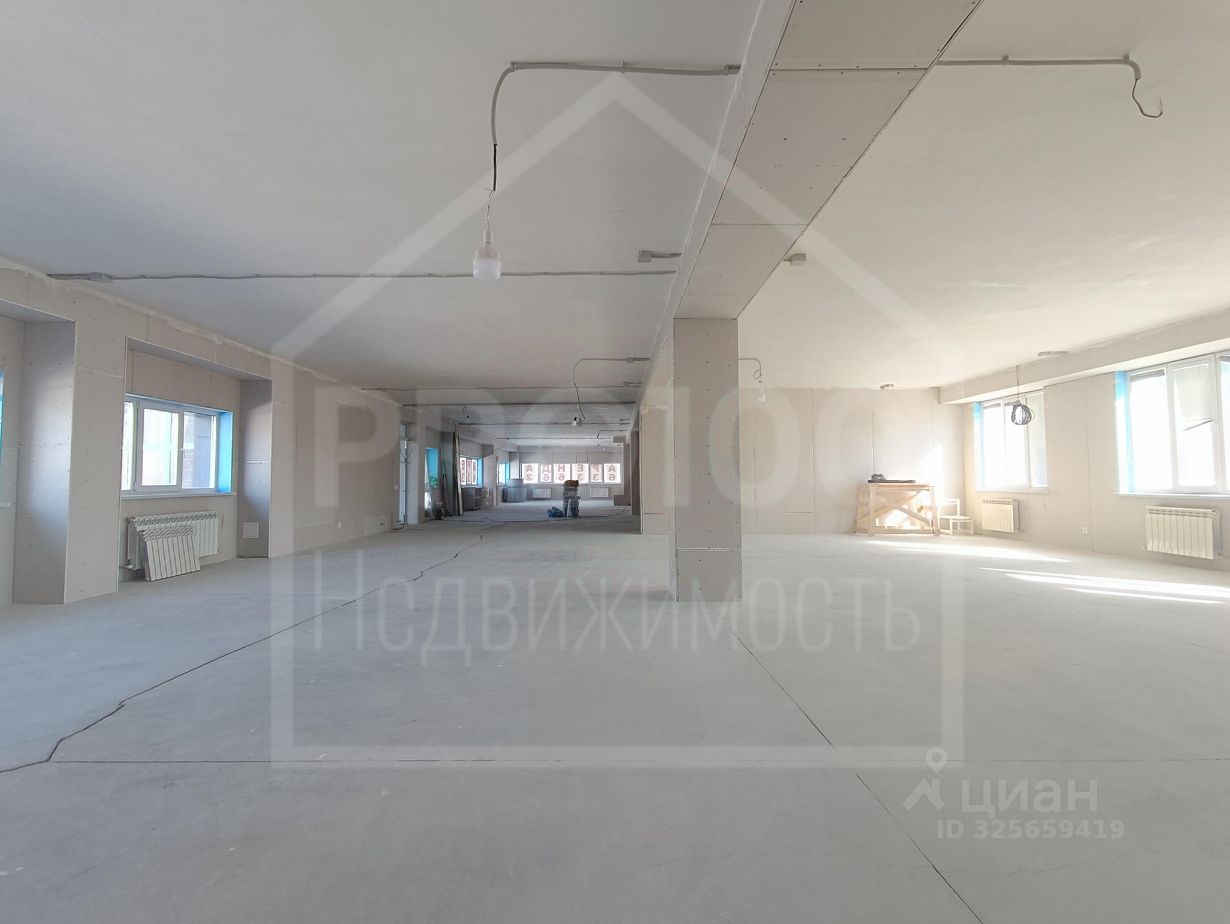 В настоящее время помещение освобождено от перегородок, организовано открытое пространство, сделан черновой ремонт, на полу бетонная стяжка.