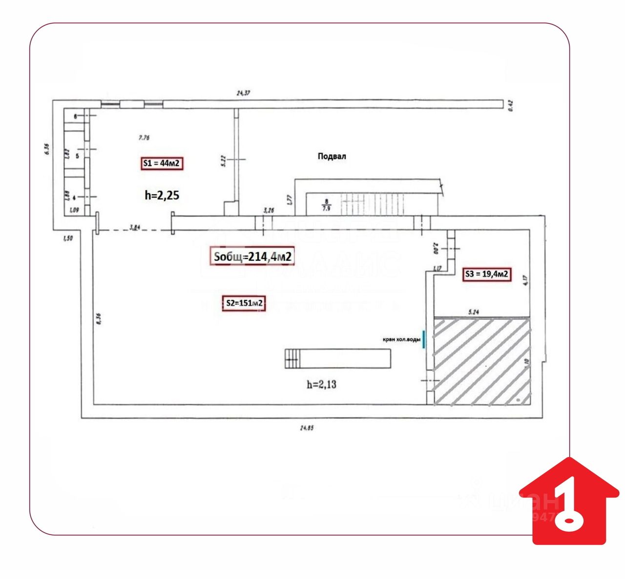 В помещение проведена холодная вода, имеется возможность подключить канализацию. Санузел на первом этаже.