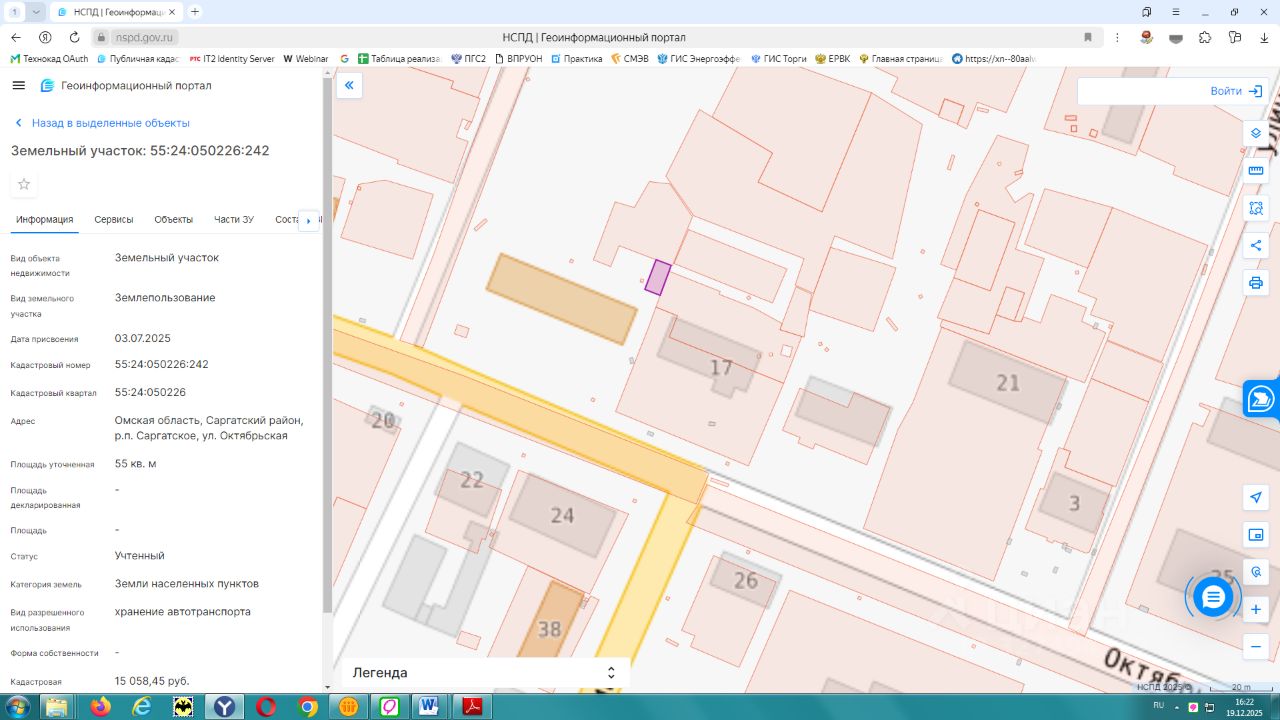 Земельный участок, находящийся в государственной собственности до разграничения из земель населенных пунктов, вид разрешенного использования: хранение автотранспорта, с кадастровым номером 55:24:050226:242, площадью 55 кв.м. Местоположение: Омская область, Саргатский район, р.п. Саргатское, ул. Октябрьская,