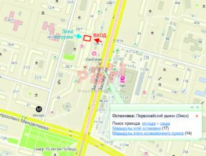 Рядом остановка, жилой массив и "Первомайский рынок".