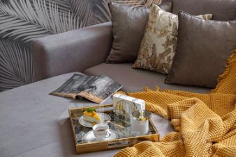 В апартаментах диван king-size выполнен по спецзаказу и трансформируется в кровать. В доме есть лифт, в апартаментах лоджия застекленная, стиральная машина, автоматическая кофе-машина, установлен фильтр очистки питьевой воды, есть личный сейф с кодовым замком, кондиционер, TV смарт со спутниковыми каналами, бесплатный Wi-Fi и высокоскоростной интернет, постельное белье и полотенца, туалетные принадлежности, фен для сушки волос.
