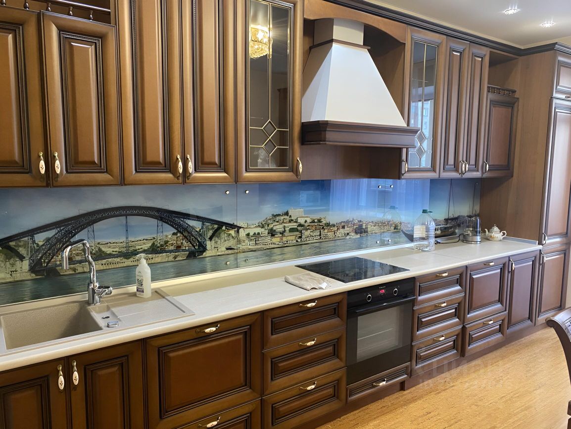 Кухня полностью оснащена ,гарнитур со встроенной бытовой техникой -холодильник ,микроволновка ,духовой шкаф ,варочная поверхность ,вытяжка ,посудомоечная машина, обеденная зона .
