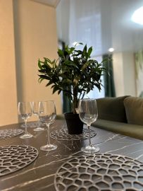 Квартира оборудована НОВЕЙШЕЙ мебелью ( гладильной доской, утюгом) и бытовой техникой, включая стиральную машину, холодильник, чайник, микроволновую печь и посудомоечную машину. Полы с подогревом создадут атмосферу уюта и комфорта, позволяя вам наслаждаться каждым моментом пребывания в этом жилье.