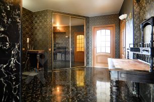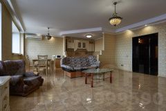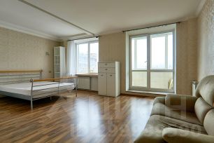 Квартира общей площадью более 100 м 2 включает в себя спальню с выходом на балкон, а также большой зал студийного типа.