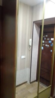 В коридоре имеется шкаф-купе для одежды и вещей. Ванная комната облицована плиткой керамической. В жилой комнате выполнен ремонт, потолки натяжные, имеется спальное место.